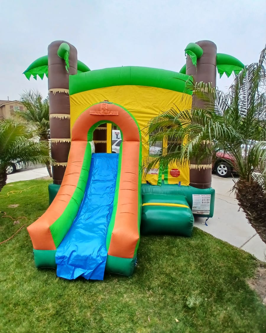 Looking for a unique and exciting way to keep your guests entertained? Discover the unbeatable fun of our Palm Tree Mini Combo Dry in Riverside, CA! This versatile inflatable features a thrilling dry slide and a built-in basketball hoop, making it perfect for all ages and any event, from birthday parties and family gatherings to weddings and community celebrations.